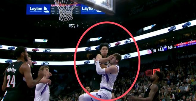 杨瀚森霸气回击!被隔扣之后血帽凯斯勒,隔空