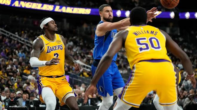 NBA季前赛正在如火如荼的进行中,湖人坐镇主场背靠背与独行侠展开对决。此役,勒布朗詹姆斯、卢卡东契奇、布朗尼、斯马特、艾顿、拉拉维亚、里夫斯伤停,雷迪克使用了海斯、八村塁、文森特、范德比尔特、克内克特的首发五虎。凯里欧文、艾克萨姆、加福德伤停,基德的首发五虎是安东尼戴维斯、克莱汤普森、弗拉格、华盛顿与莱夫利。两大超人气球队,为球迷们奉献了一场精彩的视觉盛宴。 詹姆斯缺战,浓眉18+9,独行侠完胜紫金军团!弗拉格13+3,湖人末节8比37落后惨遭逆转! 全场比赛回顾 首节开打,文森特连中3记三分球,弗拉格上篮得手,海斯暴扣,浓眉低位单打命中还以颜色。文森特继续远投发难,再中2记三分球,华盛顿勾手打进,文森特3罚全中,湖人打出了20比8的完美开局。弗拉格暴扣,海斯抢断后完成扣篮,比赛进入暂停。克莱2罚全中,拉塞尔抢断,范德比尔特大帽马绍尔,拉塞尔命中2+0,克里斯蒂轰进远投。浓眉低位得手,独行侠9比0的攻势,分差仅为3分。RJ戴维斯轰进3+1,为紫金军团止血。 文森提持球进攻