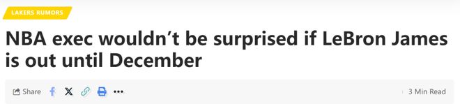 曝詹姆斯可能缺席至12月!NBA高管:他的身体恢复