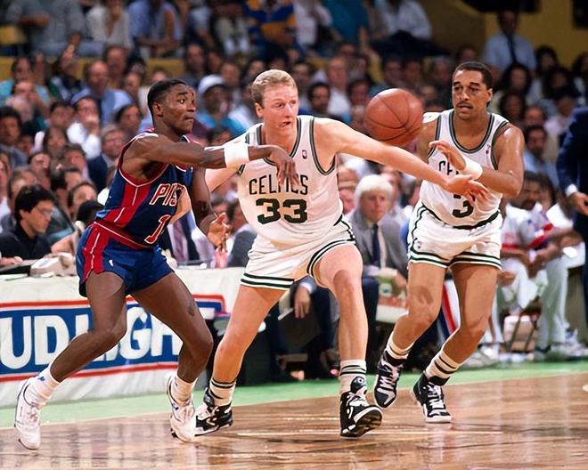 大鸟无奈伤缺,绿军惨遭横扫。 首先,严格意义上来说,伯德个人并未被活塞队击败,由于偏执的性格,在1988年的夏天,大鸟因为不愿意出资修缮马路,而是自己日夜劳作,这导致他在88-89赛季遭遇到了极为严重的背伤,最终只打了6场比赛就赛季报销了。 但在伯德看来,他和球队是一体的,因此即便无法出战,凯尔特人队被活塞淘汰,也属于是自己的责任。也正是因为缺少了伯德,这个赛季的绿军只排在了东部第八位。在首轮的对决中,他们没有什么机会可言,第一场虽然凯文·麦克海尔拿下了27分、7个篮板,但活塞多点开花,乔·杜马斯独得25分、9次助攻,另外还有四人得分上双,球队也是轻松赢下了比赛。 第二场,绿军虽然三人得分达到20+,但无奈活塞的状态同样出色,伊塞亚·托马斯26分、8次助攻,马克·阿吉雷21分,再加上替补席的维尼尔·约翰逊的18分,活塞拿到了赛点。回到主场的绿军兵败如山倒,第四节彻底崩盘,最终被凯尔特人横扫出局。