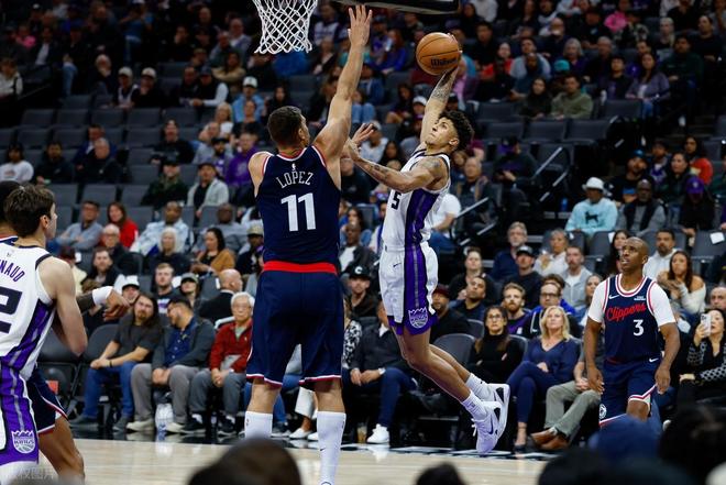 今天国王主场迎战快船,国王首发:施罗德、拉文、萨里奇、德罗赞、萨博尼斯;快船首发:祖巴茨、琼斯、小卡、米勒、哈登。 首节开局,小萨先打进,米勒造犯规罚球,双方疯狂打铁。哈登传球失误直接送了拉文,祖巴茨也被小萨抢断,国王8-4打停快船。回到比赛,祖巴茨内线打进,哈登助攻小琼斯2+0。施罗德开始发威连续得分,国王16-8拉开分差。小卡中投止血,小萨疯狂篮板,哈登犯规双方开始换人。保罗连续助攻大洛和巴图姆三命中,大洛又是一记三分,快船替补一波9-0小高潮反超。保罗压哨三分命中,首节结束快船26-18领先8分。