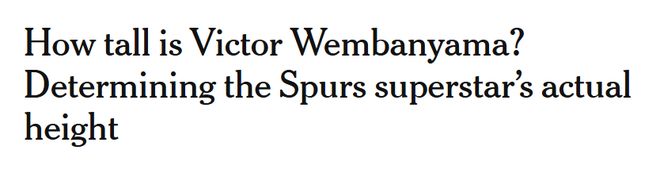 北京时间10月16日,The Athletic撰文讨论了一个有趣的话题,那就是文班亚马现在究竟多高了?以下是报道全文——