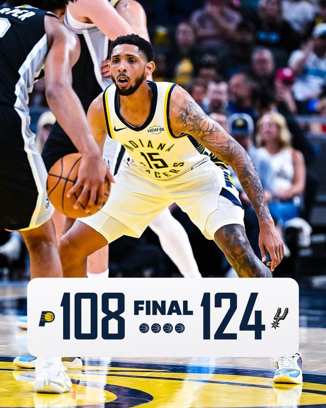 NBA季前赛继续火热进行,马刺奔赴客场挑战步行者。印第安纳上赛季打入总决赛,实力强大。重建中的圣安东尼奥,则在文班亚马的带领之下,尝试着在西部赛区崛起。两大超人气球队的较量,充满了看点。此役,福克斯、索汉、奥利尼克3大马刺悍将缺战。步行者队方面,哈利伯顿因伤赛季报销,麦康奈尔、谢泼德也在此战伤停。圣安东尼奥的首发五虎是文班亚马、巴恩斯、卡斯尔、瓦塞尔与尚帕尼,印第安纳的首发则西亚卡姆、马瑟林、杰克逊、内姆哈德与内史密斯。 狂轰27+11+4+3,文班亚马暴走,马刺完胜步行者!马瑟林12中11饮恨! 全场比赛回顾 首节开打,马瑟林状态火热,他里突外投连续砍分。文班亚马率队实现了多点开花,马刺得以紧咬比分。印第安纳进攻效率出现下滑,圣安东尼奥趁势轰出进攻高潮,得以反超比分。首节打完,马刺以34比30领先。 马瑟林外线出手