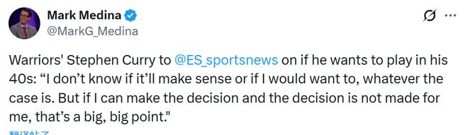 “我只能说,我希望自己能有选择权,而且前提是我的能力确实还能支撑我继续打球,”库里说道,“我不确定(打到40岁)是否合理,也不确定自己届时是否还想打,各种情况都有可能。但如果我能自己做决定,而不是被迫接受别人替我做的决定,这一点对我来说非常重要。” 库里有足够时间规划未来。他与勇士队的合同将持续到2026-27赛季,而且双方多年来也多次表示,“库里整个NBA生涯都效力于勇士”是双方的优先目标。 短期来看,库里能在2025-26赛季清楚了解自己的状态:能否保持全明星级别的竞技水平、能否维持健康。勇士队被认为是总冠军的“黑马”候选,这在很大程度上要归功于库里。但其他因素可能会延长或缩短他们的争冠窗口期。