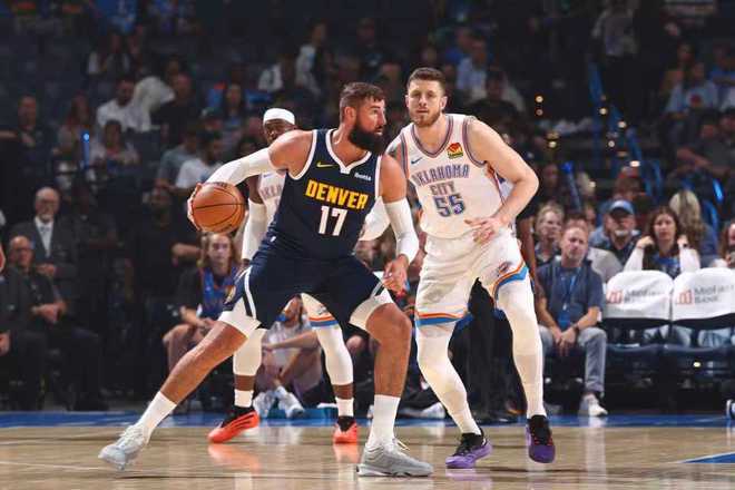 中场休息回来,双方进攻火力均是出现下滑,尤其是掘金第三节比第二节少得到22分,也是掘金首次单节得分不足20分。亚历山大下半场未登场,瓦兰丘纳斯手臂一度被抓出血下场治疗,掘金单节16-20输掉4分,三节结束掘金被追到75-66领先雷霆。前三节比赛,掘金三分34中15,全队3人得分上双,沃特森15+6+4、小哈达威13+4三分与布朗10分,雷霆2人得分上双。