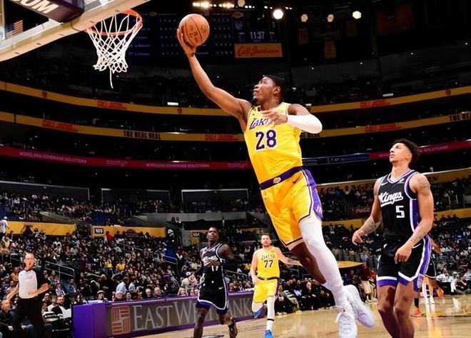 本场比赛,双方在首发阵容上面,国王这边派出的是拉文、克利福德、尤班克斯、施罗德、琼斯,湖人这边派出的是东契奇、里夫斯、文森特、八村塁、艾顿。首节比赛开始,湖人率先拿到球权,八村塁腾空上篮,一气呵成打进本场比赛首个进球;东契奇追身三分正入网心,拉文的弧顶大号三分球,也为国王队开张;克利福德禁区内强行抛投命中,尤班克斯丝滑脚步晃开防守,轻松上篮打进一球,琼斯抡起双锤,毁灭暴扣技惊四座;施罗德抢断快攻,反击一条龙稳稳得手,里夫斯变向之后的急停跳投正入网心。 首节比赛,两队就展开对攻大战,效率都很高。第一节结束,湖人34-36落后国王2分。