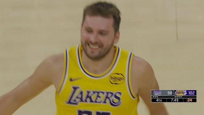 中锋防东契奇?移动速度太慢,后卫防东契奇?体重顶不住,锋线防东契奇?技巧差太远,难怪卢卡在赛后板凳席上也是哈哈大笑,包括被换下场的时候都是一脸笑容的,你能够感觉到卢卡这场比赛是打爽了打开心了,手上有球了,明显就很高兴。