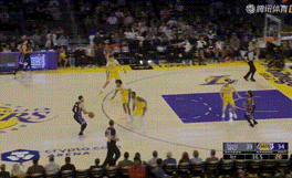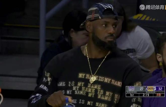 看见威少再度坐在湖人主场的场边时 镜头非常默契的给到了另一边的老詹