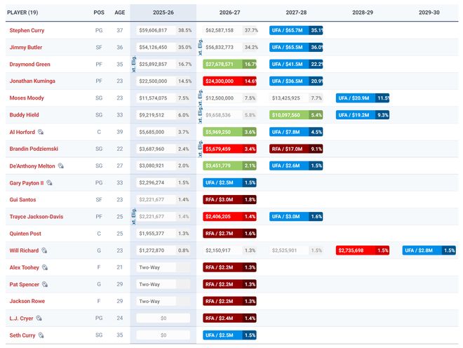 勇士在33岁及以上的球员有7人:库里、霍福德、希尔德、巴特勒、追梦、赛思、佩顿;说白了这套阵容是又矮又老,快船的阵容虽然老但他高啊,勇士这阵容实在是太矮了。 |