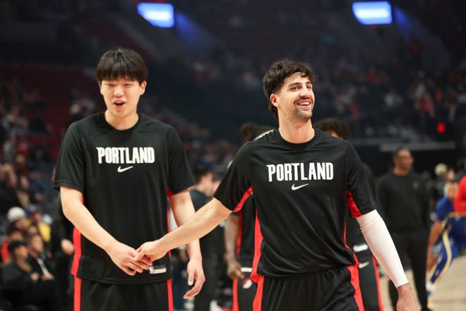 我们在中国联赛甚至夏季联赛中都看到过他这方面的闪现,但当然,那些比赛并不总是能直接转化为NBA水平。 真正的考验是在季前赛中,在那些比赛中,瀚森场均大约有2.5次三分球出手。这不是一个很大的数量,但足以注意到开拓者显然想测试他比赛的这一部分。考虑到他每晚只打大约18分钟——主要是受到犯规问题的限制,这实际上是一个不错的出手次数。 一旦他获得更多的上场时间并在进攻中变得更加舒适,我们可以预期这个数字会上升。这是至关重要的,因为他的整个进攻潜力都取决于此。 如果瀚森不能在三分线外保持稳定,那么他在进攻端的价值就会局限于在挡拆后从短距离内进行组织、在高位或低位传球、进攻篮板和护框。这并不差,但这限制了他的上限。 然而,如果他能以可靠的命中率投篮,一切就都改变了。这会迫使防守方在外线防守他,从而打开传球路线、创造切入机会,并给他更多的空间为他人创造机会。 他的进攻潜力、拉开空间的能力、创造空间的能力以及阅读比赛的能力,都直接与他三分球的发展程度相关。 到目前为止,迹象是有希望的。在这四场季前赛的小样本中,他在场均2.5次三分出手的情况下,三分球命中率为40%。 杨瀚森的投篮动作看起来很流畅,出手也很稳定,开拓者显然将此视为一种需要长期培养的武器。如果他能巩固自己作为一名可靠的中锋投手的地位,这将完全改变他职业生涯的轨迹。 如果不能,那将是一个完全不同的故事——杨瀚森作为一名NBA球员将会有两种完全不同的版本。 杨瀚森的长期展望 当讨论杨瀚森真正积极的方面时,有几点确实很突出。首先,他在篮筐附近的狭小空间内的位置感,他似乎总是知道该在哪里。 他在无球时移动得很聪明,很明显他有很高的篮球智商。这不是一朝一夕就能培养出来的,这来自于他的本能和多年训练所打下的基础。 即使在最坏的情况下,如果他不能成为一名出色的射手或精英级别的防守者,瀚森也有足够的工具在NBA立足。 他的身材、他对比赛的理解以及他使用身体的方式已经赋予了他价值。像他这样的球员总会有一席之地,至少可以作为一名替补中锋,提供身高、篮板和聪明的位置感。 杨瀚森会成为水货吗?
