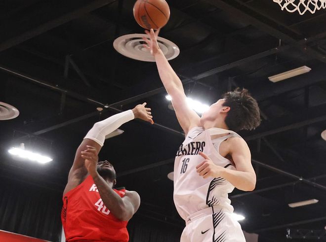 即使样本量很小,他场均也有1.3次盖帽,这表明尽管有犯规问题和经验不足,但他的时机把握和护框本能已经在NBA级别得到了体现。 进攻潜力:组织能力与投篮发展 真正让杨瀚森如此受欢迎,甚至让人们开始将他与约基奇进行比较的是他的球场视野。对于一名年轻的大个子来说,他对比赛的感觉确实令人印象深刻。但一旦你进入NBA,情况就有点不同了,这就是他的一些问题开始显现的地方。 在季前赛中,瀚森场均约有3次失误,这不算太糟糕,但他失误的方式才是令人担忧的部分。这是有规律的。他仍然在适应NBA级别的身体对抗。 当球队对他施加压力,与他进行身体对抗,或者在篮筐附近有多名防守球员直接起跳防守他时,他经常会失去控制或者仓促传球。他还没有完全适应处理这种身体对抗。