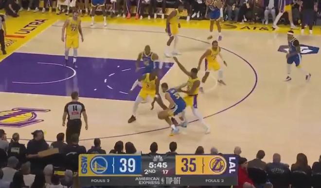 但库里在次节找到比赛感觉,多次要到犯规,单节拿到11分,上半场贡献14分,投进2个三分球。