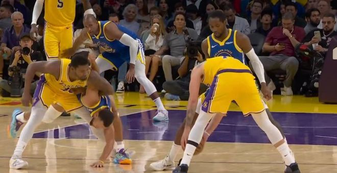 斯玛特故意报复的味道有点重啊 上一回合,库里一把推倒斯玛特被吹了进攻犯规,他就用小本子默默记下了库里 然后就有了这个挺危险的犯规动作 一个搞不好能让库里肩膀脱臼受伤离场的恶犯 裁判在回看慢动作后,普通的进攻犯规直接升级为一级恶犯规。 库里球迷对斯玛特铺天盖地的讨伐声,让本就对立的两队球迷又有了新的敌人。 斯玛特和狄龙、格林都是同一类的球员 他是你的队友,真香 他是你的对手,真脏 不过,今天的斯玛特,湖人球迷也并不觉得香 一个防守回合被希尔德晃倒了800次 这就是前DPOY吗?似乎只剩……(你们说) 东契奇仿佛又回到了国家队,一个人带着整支球队单挑实力强大的敌人 东子战斗姿态高昂,一个人拿着球就是干,开局就给库明加上了一课,突破急停干拔为湖人先拔头筹 还有这样罕见的大空位3分,轻松加愉快