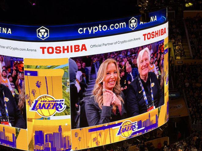 湖人新老板沃尔特和珍妮·巴斯观战湖人揭幕战比