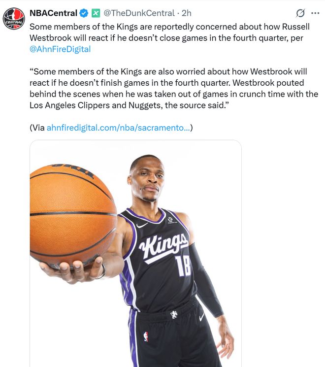 美记:国王球员担心威少闹情绪,NBA高管称签下