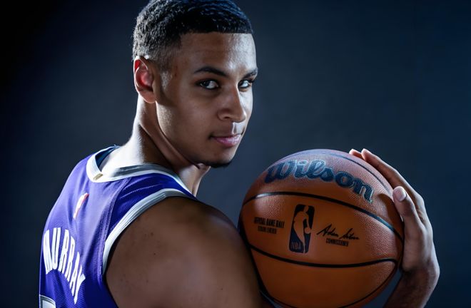 以国王视角看,他们当然知道未来的风险,但相比于溢价合约,他们更害怕的是错过未来潜力,球队此前已经送走了福克斯,目前留队的是36岁的德罗赞、29岁的小萨博尼斯、30岁的拉文,但几人目前来看都属于是中期过渡人选。 当下的国王迫切需要一个“既不抢戏、又能稳定发挥”的未来中坚人物,而年轻的默里正好能够填上这个位置。 从目前的成长进度来看,当前默里的最大价值主要还是在于防守,进攻端短板明显。但好在他效力于一支防守长期偏弱的球队,他攻强守弱的属性反而成了硬通货。无论对上对方机动性前场,还是追防外线得分手,默里都能咬死对手。 出色的臂展条件、稳定的进攻脚步,一人顶防多位置的价值,这样的属性放在现代NBA几乎就是万能模板。