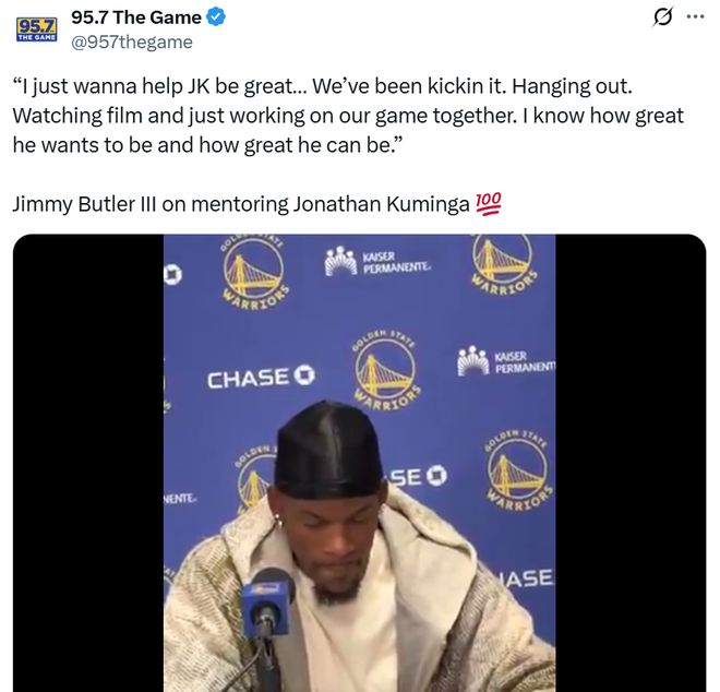 同时科尔透露,库明加之所以能够迎来蜕变,与巴特勒的指导息息相关,尤其是在训练营期间,几乎每次训练结束,巴特勒都会拉着库明加到一旁交流。 正是这些沟通与交流,让库明加现在更清楚在场上需要干些什么了。 巴特勒赛后也谈到这一点,直言自己只是希望库明加变得更加出色,因为自己每天都和他一起相处、训练、打磨球技,清楚他有多渴望变得优秀,也知道他有多大的潜力。