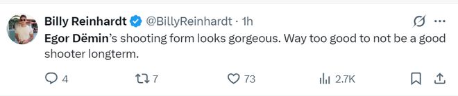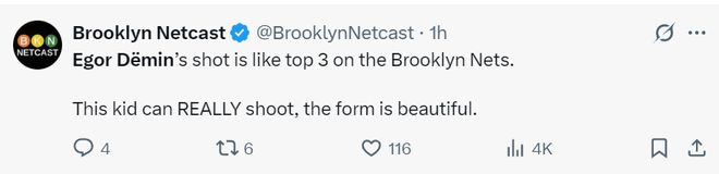 篮网媒体:杰明这个孩子的投篮动作非常优美,他至少是篮网投射前三的球员。 |