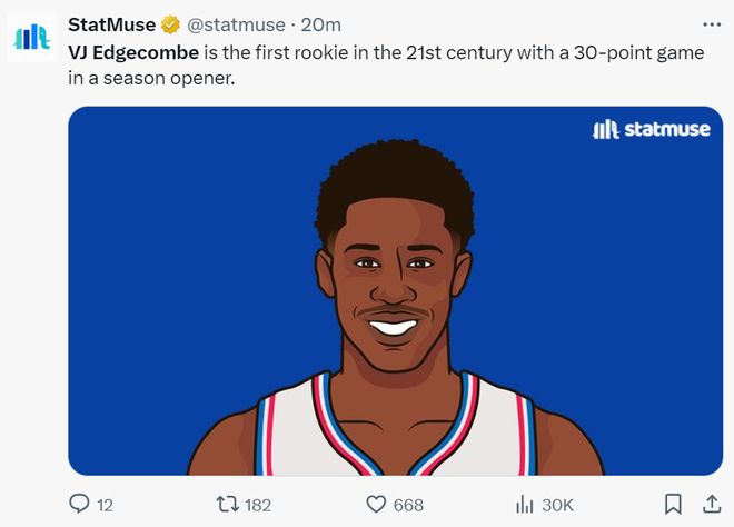 北京时间10月23日,NBA常规赛,费城76人以117-116逆转波士顿凯尔特人。这场比赛上半场打完都是费城领先,但第三节费城突然崩盘一度落后13分,末节费城双枪疯狂追分,还剩1分16秒乌布雷的三分命中已经反超,随后打到最后一刻绿凯绝杀不中,费城逆转成功。 此役费城的马克西、恩比德都登场,三巨头只有乔治还在养伤,不过费城还有一个新科探花埃奇库姆,首节埃奇库姆就给马祖拉上了一课,单节9中5+三分6中3拿到14分2助攻(超越詹姆斯成为新秀首节得分王),突破到篮下暴扣技惊四座。马克西首节只有3分,恩比德首节4中0没得分,费城全靠探花郎。绿凯则是继续打团队篮球。 第二节费城这边又是马克西时间,他单节打满12分钟10中7+三分2中2拿到19分1篮板1助攻1抢断,半场拿到21分,他帮助费城一举反超分差,埃奇库姆上半场也已经拿到16分,只有恩比德还是没有打开局面。绿凯的核心布朗、怀特都不温不火,新援西蒙斯半场只有6分进账。 第三节绿凯在怀特的带领下吹响反攻号角,怀特单节三分3中2+7罚7中拿到13分1篮板1抢断1盖帽,布朗单节5分,替补席的迪尔曼、布歇都有贡献,最关键的是绿凯限制了费城的进攻,这一节只让费城拿到18分,费城只有双枪能得分,恩比德这样的超巨7分钟里颗粒无收,绿凯凭借强大的防守能力一举领先到10分。 末节,埃奇库姆三分再中他已经拿到30+,马克西则是连拿11分已经来到35+,这对后场双枪还没有放弃比赛,两人30+追到只差5分。埃奇库姆的中投再拔进,乌布雷三分命中费城实现反超,格兰姆斯两罚一中,还剩23秒费城手握球权,绿凯难了,马克西被犯规两罚全中,普理查德抢中三分,探花被犯规两罚全中,但再度被犯规后是两罚不中,好在绿凯绝杀不中。 全场比赛,埃奇库姆43分钟,26中13,三分13中5拿到34分7篮板3助攻1抢断;马克西42分钟,24中13+三分9中7,拿到40分6助攻2篮板2抢断1盖帽,费城后场双枪真的尽力了。(恩比德9中1怒砍4分) 美媒报道,埃奇库姆成为21世纪首位揭幕战就拿到30+的新秀。 |