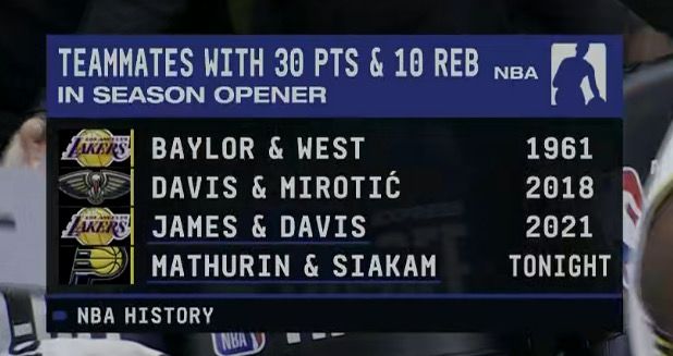 雷速体育10月24日讯 NBA常规赛,雷霆双加时141-135击败步行者,取得2连胜。 本场比赛步行者方面,马瑟林19中9拿到36分11篮板,西亚卡姆25中12拿到32分15篮板。 据统计,这是NBA历史上第4队揭幕战同砍30分+10板的队友,前三对分别是21年的詹姆斯和浓眉(湖人),18年的浓眉和米罗蒂奇(鹈鹕),1961年的贝勒和韦斯特。 |