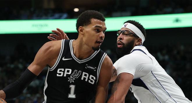 文班亚马完胜了独行侠双塔浓眉哥+莱夫利。这一战,浓眉哥22投7中,三分球4中2,罚球6中6,得到22分13篮板1助攻2抢断1盖帽。莱夫利得到4分2篮板3助攻。 文班亚马创造了一系列纪录,他成为马刺队史第二位在赛季揭幕战中至少得到30分10板的球员,上一位是2004年的邓肯。他还成为BA历史上第6个赛季首战砍下至少40分15篮板的球员,前5个是张伯伦、卡尔·马龙、沃尔特·贝拉米、埃尔金·贝勒和浓眉哥。文班在30分钟内就砍下40+15的豪华两双,历史第三位做到这一点的球员,比肩2017年浓眉和2023年恩比德。