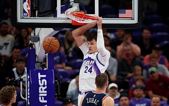 凯斯勒在上赛季的表现只能算是中规中矩,今年夏天也有包括洛杉矶湖人在内的一些球队对于凯斯勒很感兴趣。只是湖人最终不愿意付出更多的选秀权作为筹码,这也导致了交易无法完成,爵士最终也是选择了留下凯斯勒。从凯斯勒在季前赛以及本场比赛的表现来看,他真是展现出了巨大的进步和提升,他不仅在防守端保持了极高的水准,他在进攻端更是完成了不可思议的蜕变,他在外线投篮方面的稳定性以及他在传球和策应方面的表现都是令人意想不到的。如果他能够持续这样的表现,湖人抠抠搜搜没有通过交易得到他绝对是吃了大亏了。