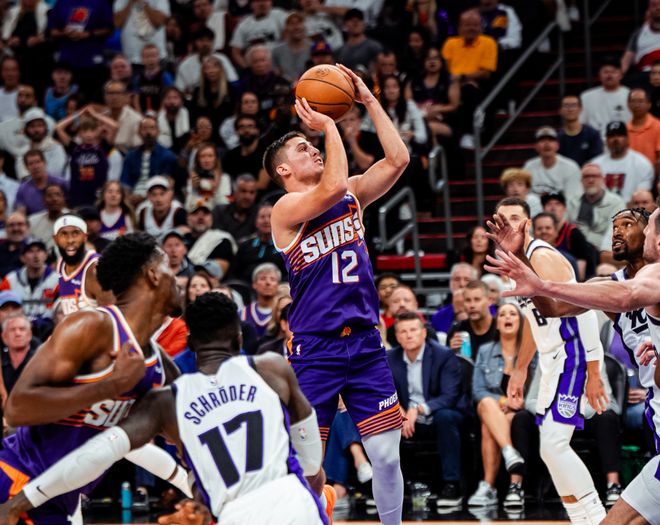 没想到整个上半场,太阳被压得喘不过气。伊戈达罗和布鲁克斯连续帮助太阳得分,不过德罗赞翻身坐打,施罗德跳投,拉文漂移中投+尤班克斯泰山压顶补扣,国王很快反超比分。中段德罗赞继续摆欧洲步,拉文躲闪上反篮+蒙克三分,国王换上威少后,威少先是一个走步。不过随后威少就助攻蒙克抛投打进。太阳就依靠布克单打维持局面,第一节国王29-19太阳,让人意外的是,布鲁克斯第一节11次出手,完全没手感,但布克身边又没人能吃下更多球权。第二节威少干拔三分不中,不过埃利斯内外开花,直接打停太阳。