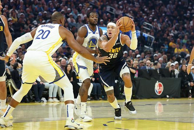 利好二:针对性补强获奇效 在严格控制核心库里登场时间的情况下,勇士队就需要更多球员站出来解决问题,休赛期的针对性补强收获奇效。 39岁的霍福德在攻防两端打出了远超预期的表现,本场替补出战三分4中3拿下13分3篮板2助攻1抢断1盖帽的全能数据。 随着霍福德这一空间型内线的加盟,勇士队能够在决胜时刻摆出库里+巴特勒+库明加+追梦+霍福德这套攻防兼备的阵容,针对性解决了锋线与内线身高、对抗与运动能力不足的问题,将库里在防守端保护起来,同时在进攻端获得更充沛的体能与进攻空间。