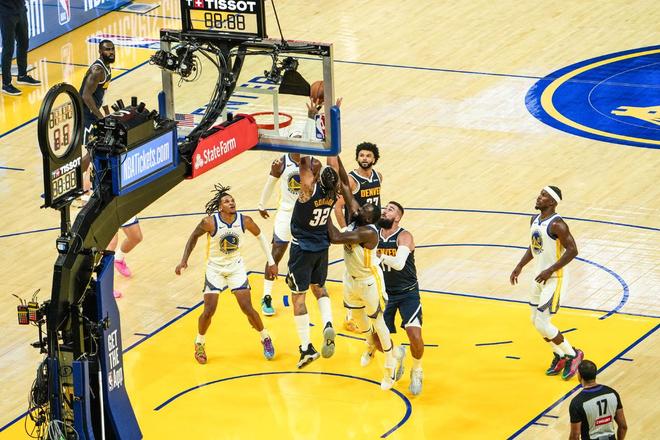 NBA常规赛继续进行,勇士坐镇主场与掘金展开激战。金州在揭幕战力擒湖人,目前斗志旺盛。此役,科尔沿用了斯蒂芬库里、德拉蒙德格林、吉米巴特勒、库明加与波杰姆斯基的首发五虎,穆迪、梅尔顿伤停。丹佛在休赛期得到了卡梅隆约翰逊、瓦兰丘纳斯、布鲁斯布朗、小哈达威4大悍将,被视为夺冠热门。此役,掘金的首发五虎是约基奇、穆雷、戈登、布劳恩与卡梅隆约翰逊,丹佛全员健康。两大豪门的对决,一触即发。 库里42+7,戈登50+8+10记3分创历史第1神迹,勇士逆转掘金!约基奇创纪录! 全场比赛回顾 首节开打,库里外线命中,格林、库明加相继抛投打进,波杰姆斯基轰进三分球,勇士打出了10比0的开局。约基奇冲击篮下打进2球,穆雷上篮得分、布劳恩外线命中,约基奇暴扣,科尔请求暂停,穆雷冲击低位命中,掘金回敬12比0的攻势。库明加打板得分,穆雷与希尔德在中距离斗法。 戈登出手三分球