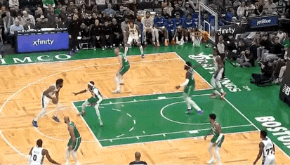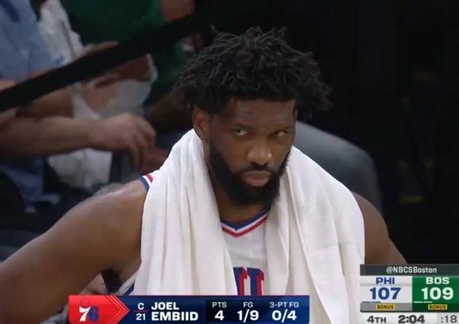 反观球队老大恩比德, “癫投”一记后再没运动战进球... 当恩比德逐渐隐身,VJ的光环却收不住了 各种强杀禁区,在绿军主场血染波士顿河