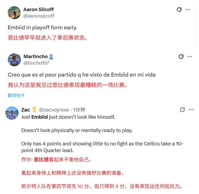 美媒《BrickCenter》的评价则更加直接与尖锐,他们晒出恩比德在比赛中的部分片段,一针见血的指出:“恩比德再也跳不动了,他的膝盖已经废了。”