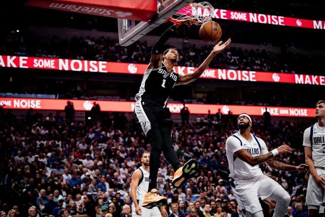 本赛季的NBA常规赛终于全面开打,在一场巅峰对决中,马刺和独行侠这对德州的老兄弟,在达拉斯主场展开了一场激烈的比赛。但令人没有想到的是,原以为会是火星撞地球,但却成为了维克托·文班亚马的个人舞台。 21岁的法国巨星,本场比赛狂砍40分、15个篮板和3次盖帽,连续第三年完成了个人能力的升级,最终也是带领球队大胜对手,为马刺队拿到了开门红。不仅如此,球队的斯蒂芬·卡斯尔也拿到了22分、7个篮板和6次助攻,迪伦·哈珀则是15分、4个篮板和2次助攻,三人隐隐约约有了当年GDP的影子。