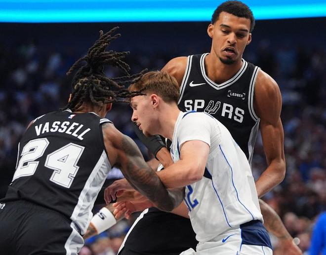 半场比赛战罢,马刺60-51领先独行侠9分,弗拉格上半场仍然没有得分进账。下半场比赛开始,易边再战,弗拉格借助掩护的急停干拔跳投一击命中,揭开第三节比赛序幕,弗拉格首分终于来了!瓦塞尔立马一个举火烧天的单臂劈扣予以回应,汤普森急刹车跳投稳稳得手,尚帕尼的侧翼三分开火洞穿篮心,文班的一个骑马射箭抛投继续命中,随后又一个高难度后撤步3+1惊呆全场。文班亚马还是太厉害了,突投结合样样都有,上场5钟就连拿10分,带领马刺队继续扩大领先优势,主场作战的独行侠溃不成军,马刺这么玩,这是要冲击季后赛了?