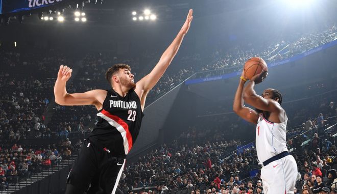 选项二:摆出小个阵容 有些小个阵容的效果其实很棒,打起来也很有观赏性。结合快节奏和运动能力,确实能压制不少球队。但遇到像快船队这样“不吃这套”,还能找到破解方法的队伍(比如用大阵容,让核心得分手在外线单打,完全不被小个阵容的节奏带偏),开拓者队就没什么应对办法了。 斯普利特还有什么招数? 试杨瀚森?现阶段他帮不上忙;等罗伯特-威廉姆斯三世?他还没获得上场许可;用杜普-里斯?他的技术特点和球队“既能护框又能换防”的防守体系完全不兼容——虽说赛季初他有过几次不错的封盖,但他既没法护框,脚步也慢,打不了真正的小个换防,就算试了也大概率没用。 |