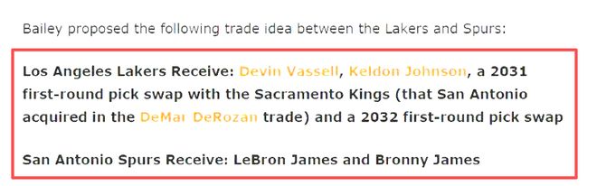 而就在近日,知名美媒Bleacher Report在社交媒体上抛出震撼观点:“詹姆斯和文班亚马这对组合能直接统治联盟啊!”并明确表示马刺应该寻求交易詹姆斯,让这两位状元联手。这一大胆设想迅速引爆NBA圈,而文章中提到4换2潜在交易方案包括:马刺送出瓦塞尔、凯尔登·约翰逊和两个首轮签互换权,从湖人得到詹姆斯和布朗尼。