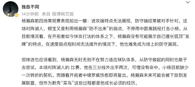 媒体人:杨瀚森这四场表现如出一辙,进攻没展