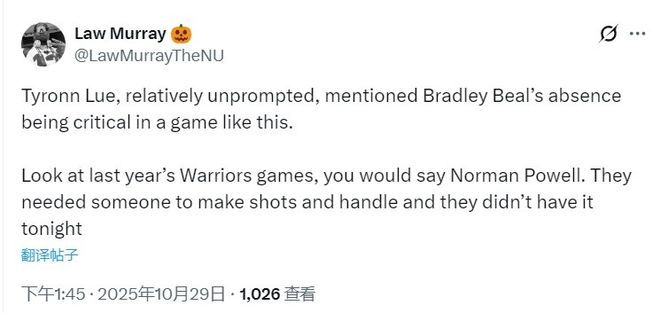 然而,在赛后,在采访中,快船主帅泰伦-卢甚至不经意间提到比尔的缺阵对这样的比赛很关键。在评论区中,网友怒怼:“还指望靠500万的比尔来救场?” 声明:个人原创,仅供参考 |