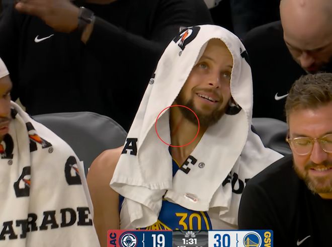 开场脖子就被抓伤!库里:我也不知道谁抓的,