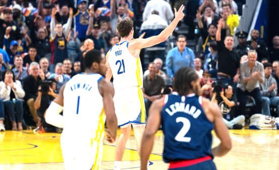 快船这边,快船的角色球员在这场高端局的对决中彻底隐身,博格丹在国际赛场大杀四方,来到快船持续低迷,此役成为库里的提款机,2中0,0分0篮板2助攻,垃圾时间上场打破得分荒!琼斯的手感冰冷6中1,得到3分;伦纳德第二节强势爆发后,下半场也彻底隐身,效率一般,17中7,3分4中1,得到18分5篮板1助攻,正负值-29!哈登上半场20分,下半场0分,体能显然不够,全场比赛哈登1次助攻,足以能窥见快船角色球员此役的表现有多差!祖巴茨得到14分13篮板,但是面对波斯特3分7中4、12分的表现,难以展现出优势!替补席的科林斯、保罗、巴图姆均表现低迷!值得一提的是,快船此役仅得到79分 创快船近4年来单场最低得分!此外,哈登也创造一个尴尬纪录,本场比赛上半场0次助攻,这是哈登2019年以来的第一次。