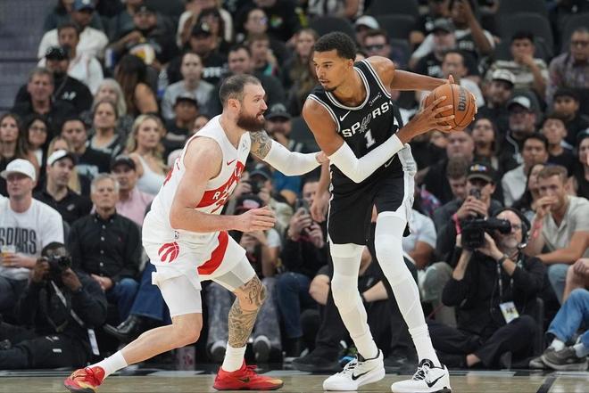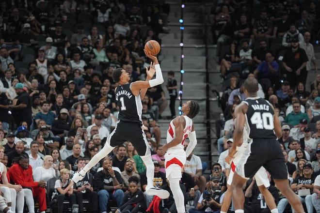 马刺队4战全胜 NBA常规赛争夺继续,开季豪取3连胜的马刺队迎来与猛龙队的较量,最终马刺队以121-103兵不血刃击败猛龙豪取4连胜。 在保持不败金身的同时,马刺队也一口气收获5大利好,核心文班亚马持续爆发拿下24+15又破纪录。