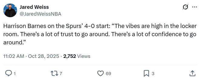 第三大利好:选秀又挑到宝 马刺队之所以能够如此快速完成重建与蜕变,自然也得益于球队出色的选秀眼光,过去3年抽签连续获得比自身顺位更高签位的情况下,马刺队先后拿下文班、卡斯尔与哈珀。 其中文班与卡斯尔已经先后拿下最佳新秀,而新科榜眼哈珀也在开季至今交出不俗表现。 本场哈珀拿下11分6篮板6助攻1抢断,打得完全不像是一名菜鸟球员,攻防两端高效、扎实、实用、冷静,是完美符合马刺队球队文化与选人眼光的高级货,大有超越卡斯尔成为球队未来二当家的势头。