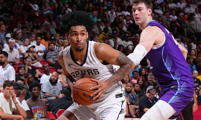 第四位,迪伦-哈珀,圣安东尼奥马刺队,2025年首轮第2顺位 马刺队在选秀之前,队内已经囤积了大量优秀后卫,不过他们并没有打算错过哈珀,这位25届新人中最好的双能卫球员。 从代表马刺队出战的第一场比赛,哈珀就展示了自己极为冷静的头脑,虽然还在适应球队节奏,但其沉稳的判断,仿佛就像一位已经打了10年的老将,同时作为球队第六人出场,在没有绝对球权的情况下, 哈珀3场比赛场均16分5篮板4.3助攻,尤其是主场战胜篮网的比赛,哈珀11投8中,高效拿下20分6篮板8助攻,赛后很多媒体都表示,在多年之后,马刺队再次等来了又一位吉诺比利。