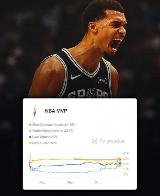 美媒ProphetX也在第一时间更新多个奖项概率,文班拿下DPOY的概率已经提升至68%。 而在MVP的竞争中,文班亚马的概率也飙升至22.9%,仅次于亚历山大的29%,超过东契奇(21%)和约基奇(18%)。