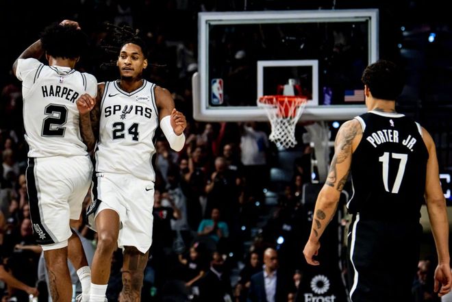 马刺豪取3连胜 开季前两场轻松击败独行侠与鹈鹕后,高歌猛进的马刺队迎来赛季主场首秀,最终兵不血刃以118-107击败篮网豪取开季3连胜,紧追卫冕冠军雷霆,成为本赛季第二支拿下3胜0负不败战绩的球队。 而马刺队之所以能够从一支摆烂重建球队迅速起飞蜕变,完全得益于球队开天眼般的选秀眼光。 尤其是过去3年连续获得比预期顺位更高签位的情况下,马刺队先后拿下文班亚马、卡斯尔与哈珀三名超级新秀,其中文班亚马与卡斯尔两人均在新秀赛季荣膺最佳新秀。