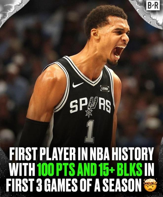 三场比赛爆砍100分40板18帽夸张数据,文班亚马刷爆纪录!榜眼秀哈珀也创历史,马刺队开季强势反弹豪取3连胜起飞。