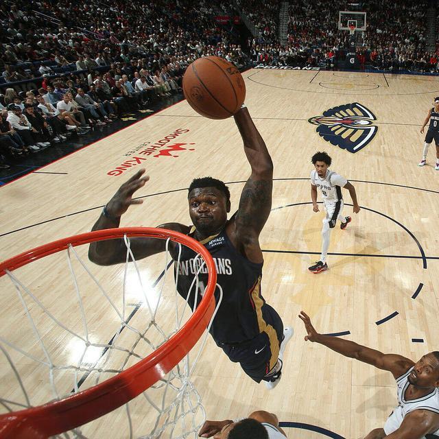 比赛风格南辕北辙、天赋点迥异的两位天纵奇才的对抗,配得上“火星撞地球”的评语。 少林功夫确实好,文班“高僧”再次证明了这一点。 虽然三分线外手感不佳3投0中,但文班依然在攻防两端充分展现了自己的统治力——进攻端23投13中砍下全场最高的29分,还抢下3个前场篮板;防守端更是化身马刺守护神,送出9记大帽抢下8个后场篮板,如叹息之墙般横亘在鹈鹕众将面前。 然而减重之后的“胖虎”此役的表现同样不遑多让。不同于文班以柔克刚的风格,锡安主打一个“一力降十慧”,虽然冲筐难免要被文班“仙人拂顶”大帽伺候,但锡安依旧毫不畏惧的不断杀向篮筐,最终硬是靠着这股勇不可挡的气势砸出了27分10个篮板的两双数据。
