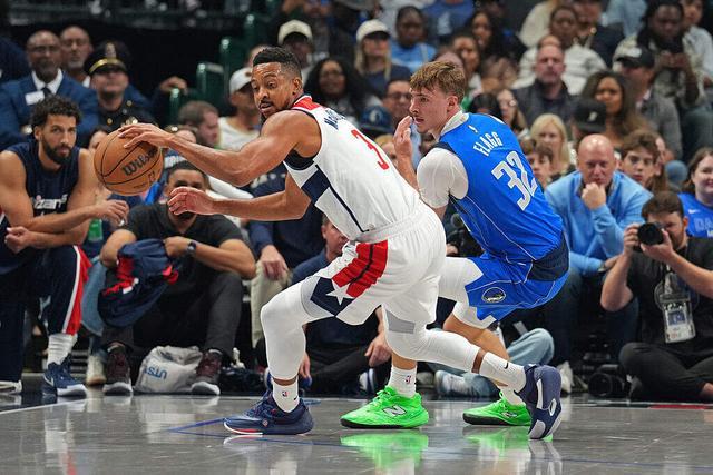 美中不足的,大概就是杨瀚森依然没有得到太多登场时间。 不过,杨瀚森也并非全无收获。比赛尘埃落定之后,披挂上阵的杨瀚森抓住了有限的表现机会,在攻防两端都做出了贡献——用一记扣篮完成了自己职业生涯的第一次运动战得分,在防守端也送出了两记大火锅。 理解大家希望瀚森多打比赛的心情,不过对他而言,当下最正确的道路,就是在有限的登场时间里尽量展现自己的特点和优势,扎扎实实的走好每一步,哪怕进展慢一点,也绝对不是坏事。 要知道,哪怕是天之骄子的状元郎,想在NBA站稳脚跟,也需要费上一番功夫的。 弗拉格也正在为自己的成长交学费。 今天,独行侠面对奇才,基德坚持让弗拉格出任了球队的首发控卫,但结果依然不够理想。球队又一次输掉了比赛,遭遇开赛两连败。