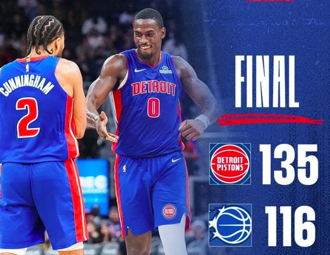 活塞135-116逆转魔术,康宁汉姆30分6篮板10助攻 魔术新赛季表现十分糟糕,活塞则慢慢进入节奏,而球队核心康宁汉姆这边也有着火热的表现,这一次完胜对面的班凯罗,24中12轰下30分10助攻的大号两双,并带领球队逆转取得胜利。 开拓者136-134击败爵士,霍勒迪27分5篮板8助攻 这场比赛也是一波三折,三节打完开拓者牢牢占据主动,可在最后一节爵士疯狂反扑,一度将分差迫近至1分,好在霍勒迪罚球十分稳健,没有给对手任何机会。全场霍勒迪16中10拿到27分,还有5篮板8助攻。