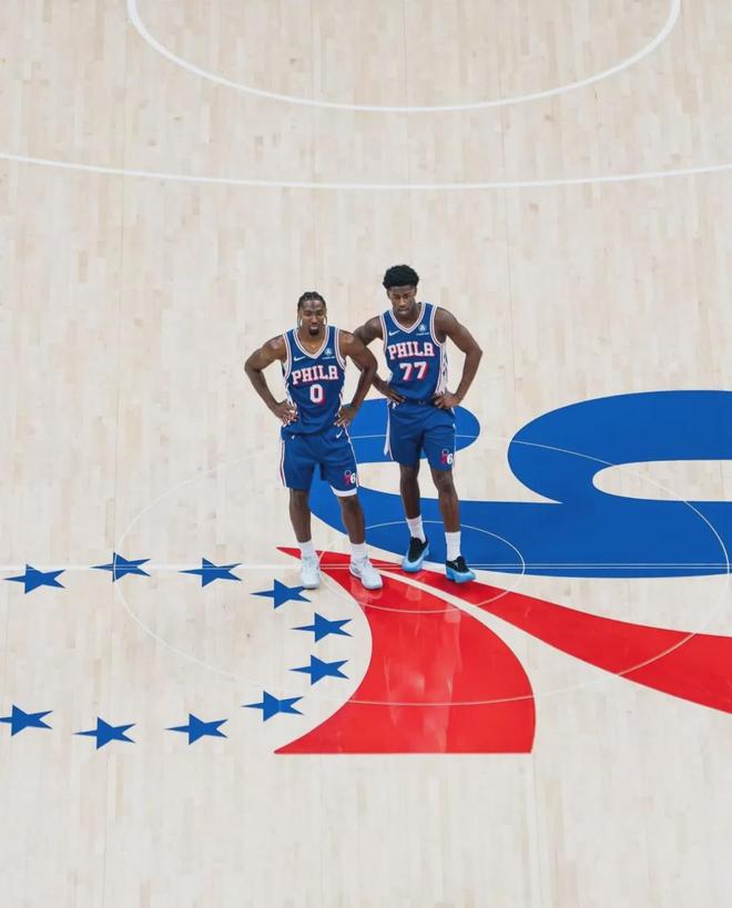 乔治因为膝盖伤势,本赛季还没有出战过。恩比德虽然已经复出,但是有上场时间限制。本赛季恩比德打了3场比赛,场均出战21分钟,得到16.3分5篮板3.7助攻0.7抢断0.7盖帽2.3失误,三项命中率:45.9%,37.5%,69.2%。