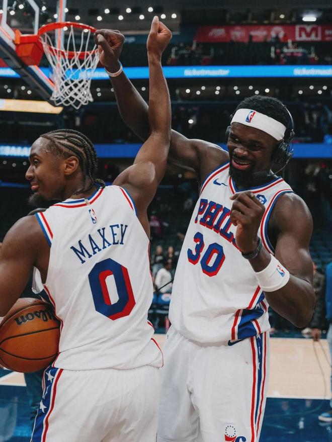 在NBA历史上只有4名后卫,能在赛季前4场比赛一共拿到150分,分别是:杰里-韦斯特、乔丹、威少和马克西。如果150分再加上30记助攻,那只有威少和马克西做到了。在马克西的率领下,76人开季取得4胜0负,高居东部第一。